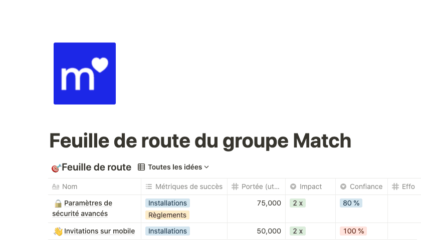 La feuille de route du groupe Match